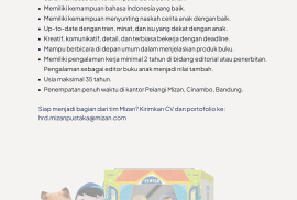 Pendaftaran dapat mengirimkan CV dan portofolio ke: hrd.mizanpustaka@mizan.com