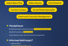 Pelangi Mizan membuka kesempatan bagi individu yang memiliki ketertarikan pada dunia literasi anak untuk bergabung sebagai Editor Buku Anak. Posisi ini ditujukan bagi yang ingin terlibat dalam proses pengembangan buku anak dan berkontribusi dalam setiap naskah sesuai dengan kebutuhan pembaca anak, serta tetap relevan dengan perkembangan tren yang ada. Selain itu, peluang ini juga menuntut ketelitian, kepekaan terhadap bahasa, serta kemampuan untuk bekerja secara terstruktur.