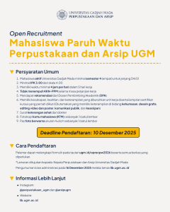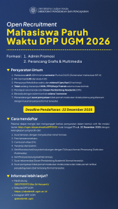 DITMAWA UGM MEMBUKA REKRUTMEN TENAGA MAHASISWA PARUH WAKTU 2026! DAFTARKAN DIRIMU SEKARANG! Selengkapnya »
