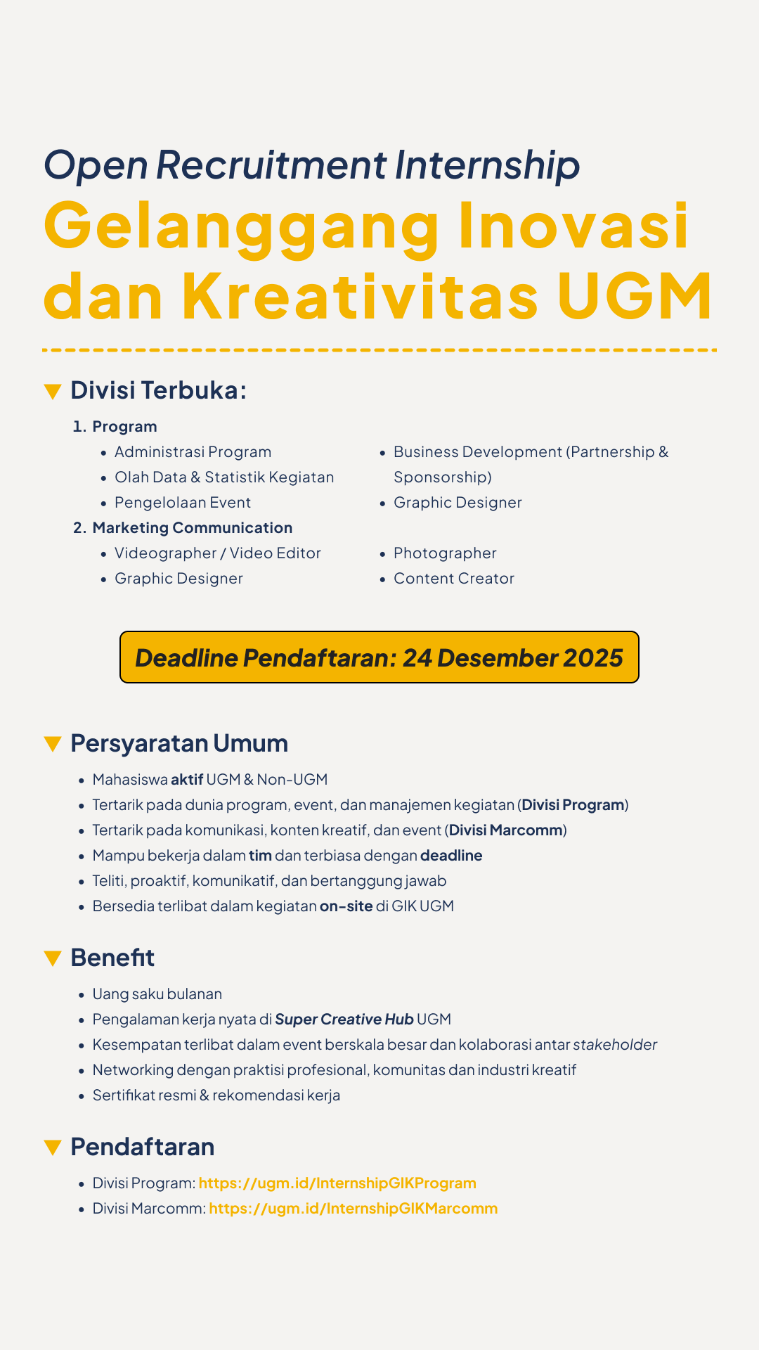 DIREKTORAT PENDIDIKAN DAN PENGAJARAN UGM MEMBUKA LOWONGAN MAHASISWA PARUH WAKTU TAHUN 2026! Selengkapnya »