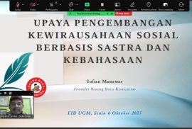 Yogyakarta, 29 September 2025 – Program Studi Sastra Arab, Fakultas Ilmu Budaya, Universitas Gadjah Mada kembali melanjutkan rangkaian perkuliahan Kewirausahaan pada pertemuan kelima dengan menghadirkan Sofian Munawar, S.S., M.A., Founder Ruang Baca Komunitas. Pada kesempatan ini, mahasiswa diajak mendalami konsep social entrepreneurship atau kewirausahaan sosial, sebuah pendekatan bisnis yang menempatkan penyelesaian masalah sosial, lingkungan, dan komunitas sebagai tujuan utama melalui cara-cara inovatif dan berkelanjutan.